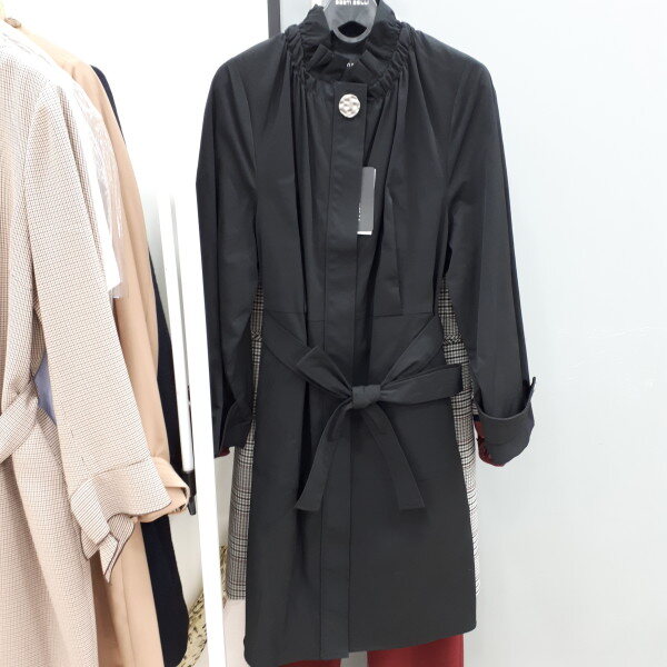 재천벨트를포함한 트렌치코트입니다네크라인에셔링처리를하여숄더라인이슬람해보입니다약간여유있는핏입니다