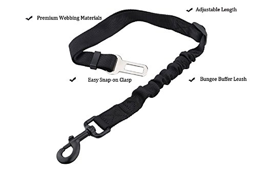 -. Feature : Universally Compatibility - The dog seat belt is suitable for most cars, , Suv. Safely protect the dog from running out of the car, allow your pet dog lie, stand, sit comfortably in the car / Comfortable for Your Pets - Our pet safety belt can reduce driver distraction and keeps pets comfortable, safe and secure in vehicle / Safety - The pet car seat belt is made from durable nylon fabric, nickel fittings are rust-proof. Elastic bungee section absorbs shock and doubles in length during sudden stop or swerve / Adjustable Length - The length of the belt with simple pull can be adjusted within a range from 32 to 35 inch, allows your dog to sit, stand or lie down comfortably in a car / 100% CUSTOMER SATISFACTION - If there is any problems, feel free to contact us. We would try our best to give you better service.