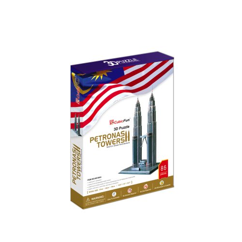 -. Feature : A fun and challenging 3D puzzle of The Petronas Towers in Kuala Lumpur / Constructed using CubicFun's unique slotting system / Difficulty Level: 6 stars ; Number of Pieces: 88 / Construction time: 150 to 180 minutes / Height when completed: 51.5cm
