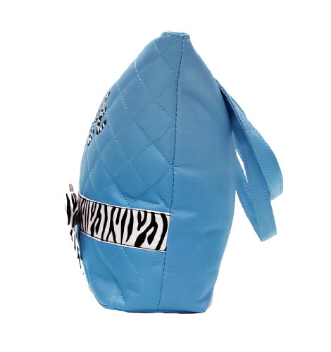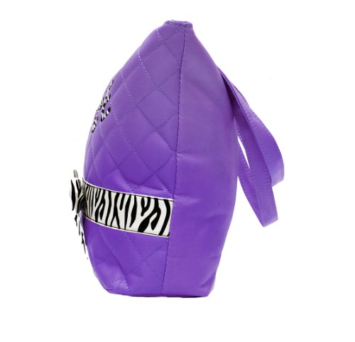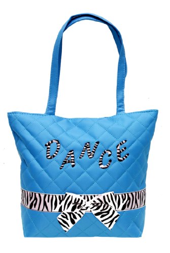 -. Feature : Quilted Tote / Zebra ribbon trim / Embroidered Dance Logo / Zipper money pocket inside / Dimensions: 12" Wide X 11" High