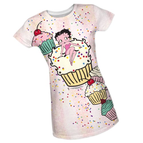 -. Title : Cup Cake -- Betty Boop Juniors All-Over Front P.R.Int Sports Fabric T-Shirt