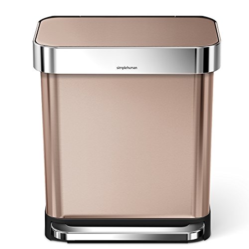 simplehuman Rectangular Step Trash Can with Liner Pocket, Rose Gold Stainless Steel, 30 Litre / 7.9 Gal