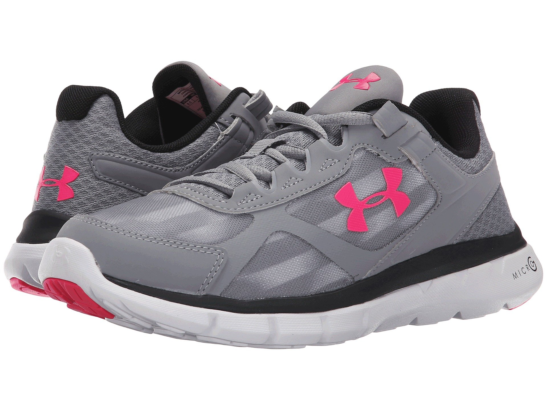 | Product Information SKU: #8629708Enhance your workout in the Under Armour? UA Micro G? Velocity RN running shoe!Built for the neutral runner. Lightweight, breathable mesh upper with seamless synthetic overlays. Lace-up closure. Plush tongue and collar. Breathable fabric lining offers a great in-shoe feel. EVA foam insole. Full-length Micro G? midsole turns cushioned landings into explosive takeoffs. Differential: 10 mmSolid rubber outsole over high-impact zones for lasting durability at a lighter weight.Added heel cushioning and strategic outsole flex grooves work together to promote a more natural stride.Imported. Product measurements were taken using size 8.5, width B - Medium. Please note that measurements may vary by size.Weight of footwear is based on a single item, not a pair.Measurements: Weight: 8 oz |