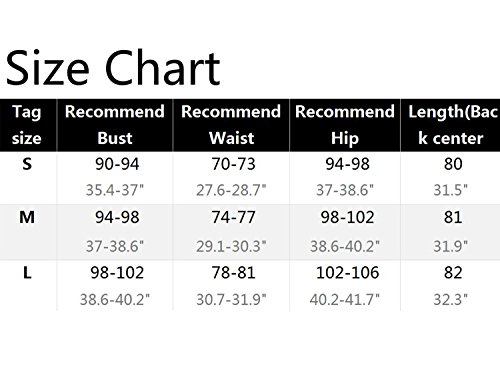 L=US 8-10 / UK 14 / EU 40 : ---Bust :36.2-38.6" ---Waist :29.1-30.7" ---Length :35.4"