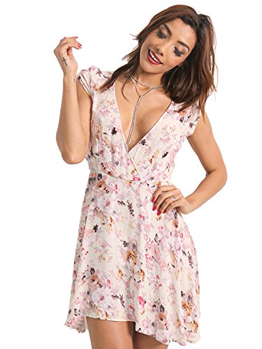 2.Bohemian floras mini dress, over knee length with asymmetrical hemline, sexy deep v neck with short sleeves.