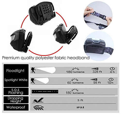 -. Title : QPAU LED Headlamp Sensor Control with USB Rechargeable 180lumen Floodlight/ 60lumen Spotlight White/ 180lumen Flashlight Adjustable Headlight Perfect for Outdoor and Indoor Activity