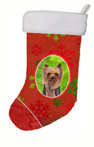 Caroline's Treasures SC9405-CS Yorkie Red and Green Snowflakes Holiday Christmas Stocking, 11 x 18", Multicolor