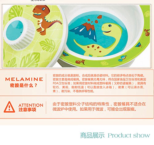 Feature : Melamine bowl comes with removable suction base / Lid has air tight seal / Includes stainless steel and ABS plastic silverware set / Melamine looks like ceramic, but is lighter weight, more durable, but not unbreakable / Dishwasher safe, do not microwave