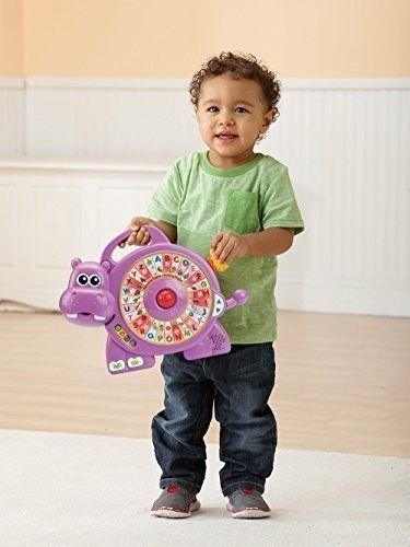 -. Binding : Toy -. Brand : VTech Baby -. EAN : 0783050367179 -. Feature : Have a blast with the light up toy hippo by VTech toys; the toys interactive learning resources introduce letters, numbers, objects and more / Toddler toy is both an alphabet toy and counting toy in one; rolling the red ball plays fun sound effects that teach your toddler / Preschool toy teaches 26 fun facts, play 6 fun activities and hear 26 cheerful melodies and 4 sing-along songs; answer 50 quiz questions to reinforce toddler learning / Infant toy encourages language development and introduces numbers by making a connection between what kids see and what they hear / The early learning center is intended for toddlers 18 months to 4 years old; 2 AA batteries included for demo only, use new batteries for regular use -. IsAdultProduct : 0 -. Label : Vtech Baby -. Manufacturer : Vtech Baby -. ProductGroup : Toy -. ProductTypeName : TOYS_AND_GAMES -. Publisher : Vtech Baby -. Studio : Vtech Baby -. Title : Spinning Lights Learning Hippo -. UPC : 783050367179