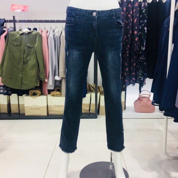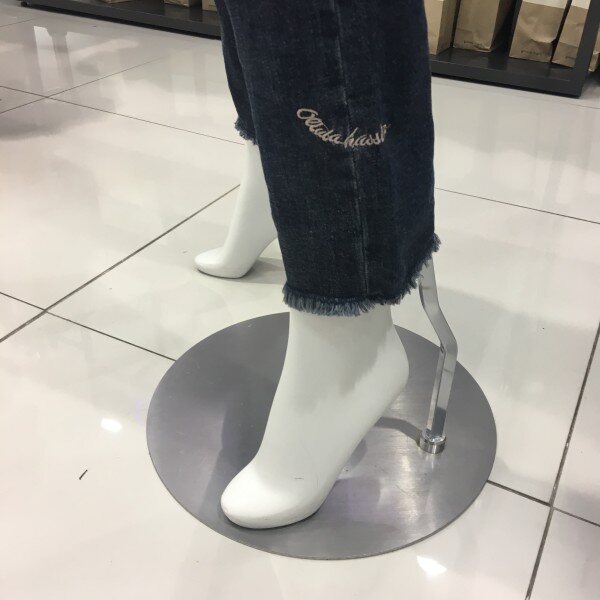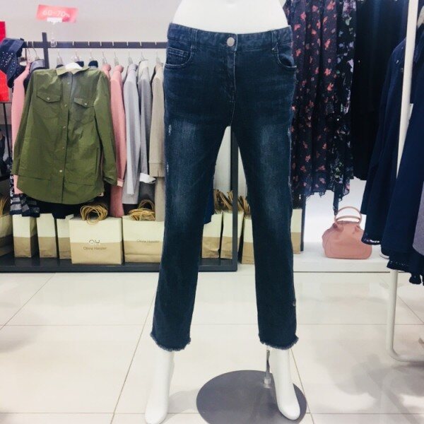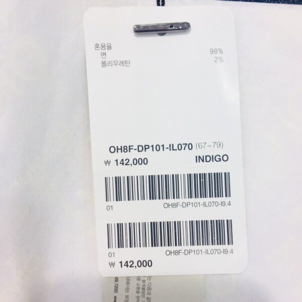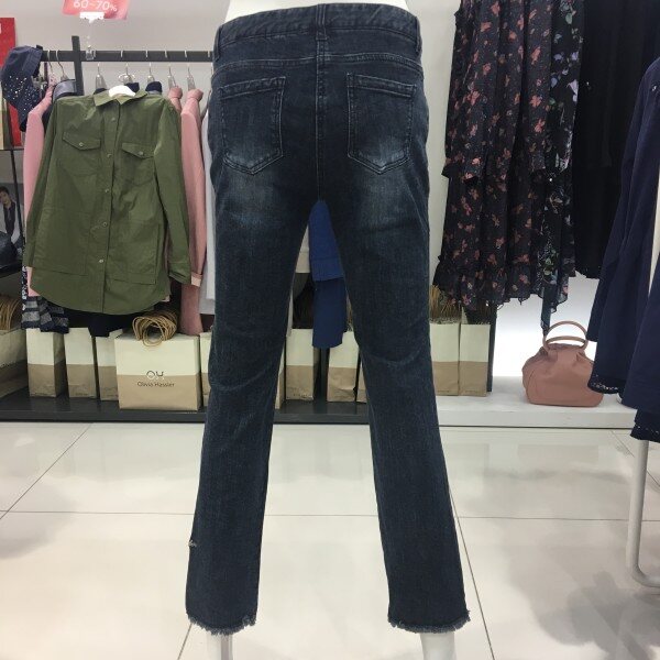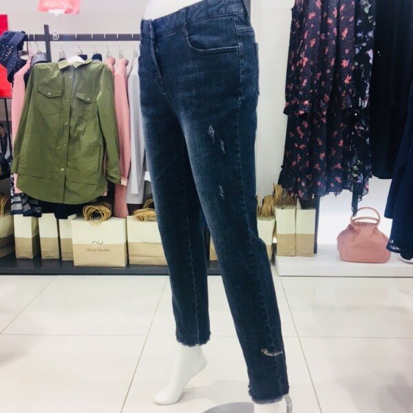 밑단 수술 디테일과 레터링 자수로 포인트를 준 일자핏 데님진입니다