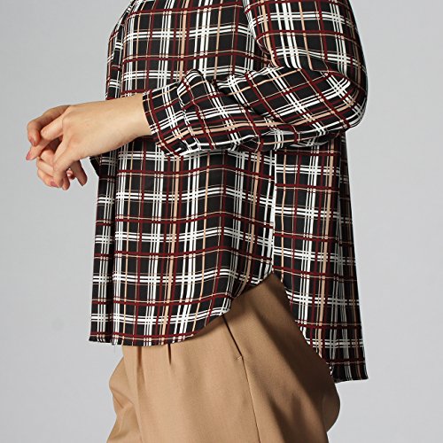 -. Title : (アンタイトル) UNTITLED [L]〔洗える〕チェックVネック七分袖ブラウス 15383913