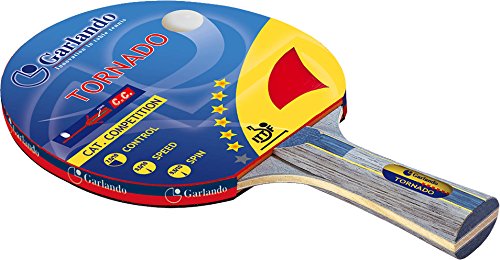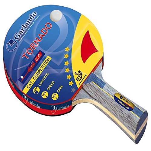 Studio : Imperial International Publisher : Imperial International Binding : Sports Product Description The Garlando Tornado table tennis racket features a rating of 6 stars, making it ideal for the player who competes regularly, and is skilled in playing techniques and tactics. This racket is designed with pips in rubber on a 1/4" professional hard plywood blade with a 3/32" sponge underlay. The handle has a cork core which increases control and provides excellent ball feedback. It's ITTF (International Table Tennis Federation) approved, allowing you to use it during competition. The Garlando Tornado table tennis racket has a performance rating of: 9.5 for speed, 9.5 for spin and 7.5 for control (scale of 1-10, with 10 as the maximum). 0