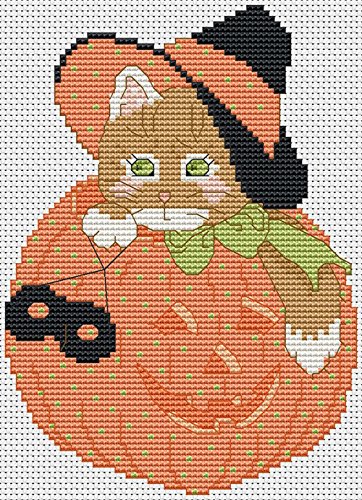Crossdecor Needlecrafts Stamped Cross Stitch Kits with Pre-printed Pattern, Pumpkin Kitty