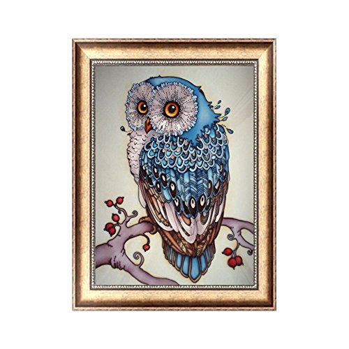 The owl is full diamond, leaving the branches painted by colored canvas, set off the beauty of the owl and look more natural