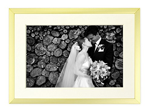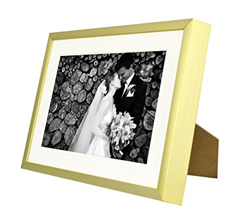 Frametory,5x7 Gold Aluminum Metal Table Top Photo Frame with Ivory Color Mat for 4x6" Picture & Real Glass Easel Stand