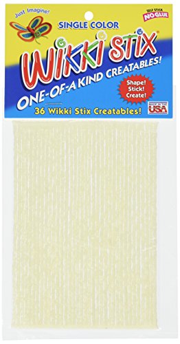 Wikki Stix Molding and Sculpting Stick makes a unique, patented wax and yarn combination, Wikki Stix adhere to the paper with just fingertip pressure. No glue no mess and no clean-up. They do not break or pull apart but cut easily with scissors. This package contains thirty-six 6 Inch long Wikki Stix. It is available in a white color. It is recommended for ages 3 and up. Warning: Choking Hazard-small parts. It is not suitable for children under 3 years. It is non-toxic. It conforms to ASTM D 4236 and EN71. Made in USA.Feature