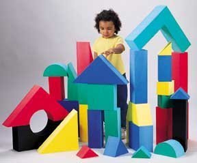 -. Feature : Build bigger, taller structures with this double set of soft, lightweight, jumbo blocks made of dense, non-toxic foam, in colorful, geometric shapes, are 4 inch / Largest block is 22 inch / Ages 2 Years+