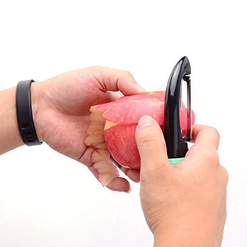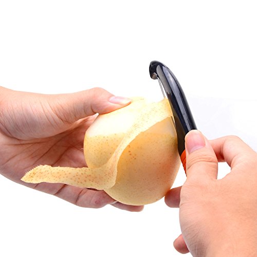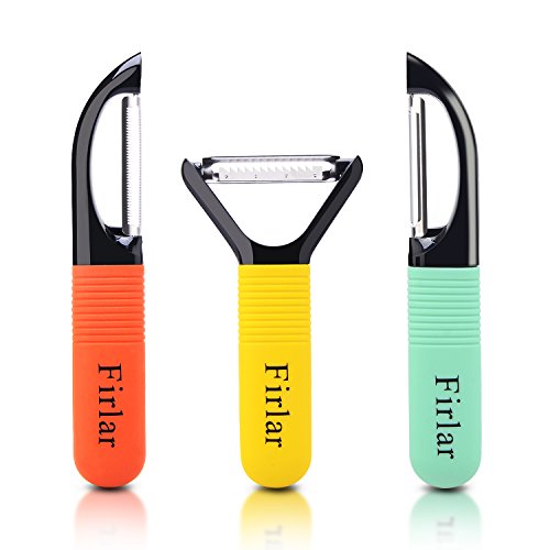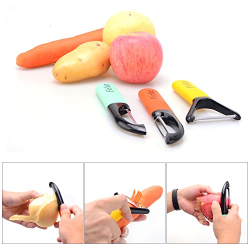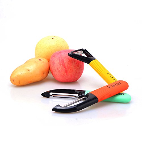 - 3 IN 1 PACKAGE - Serrated & straight blade peelers are built with extra potato eye remover. Y-shape julienne peeler could easily create thin sticks. Razor-sharp blade provides neat and precise cutting every time you use. Always choose the most suitable peeler to peel fruit & vegetable, make food preparation such an easy thing!