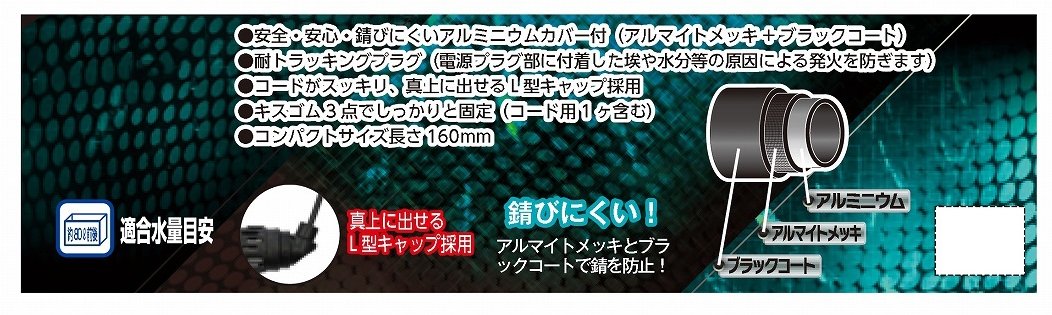 With aluminum + alumite plating + black coat with secure heater cover to prevent rust.
