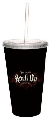 Tree-Free Greetings cc34328 Rock On: Matthew 7:24-25 Artful Traveler Double-Walled Cool Cup with Reusable Straw, 16-Ounce