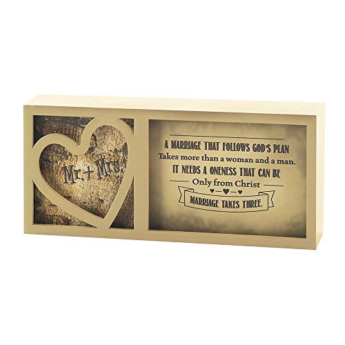 Mr. and Mrs. Marriage Takes Three Sepia 3.5 x 8 Wood Table Top Sign Plaque