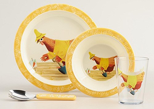 Red Hen Themed 4 Piece Tableware Set and Story Book Bundle
