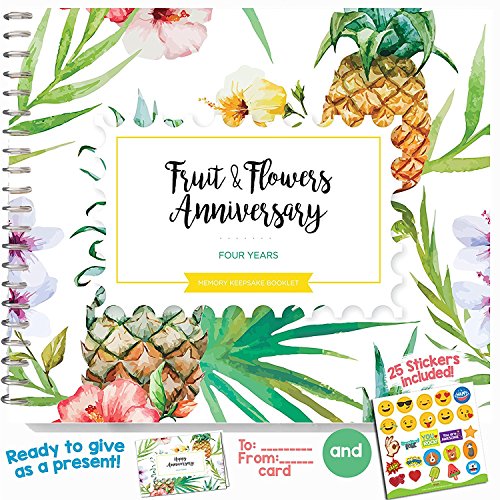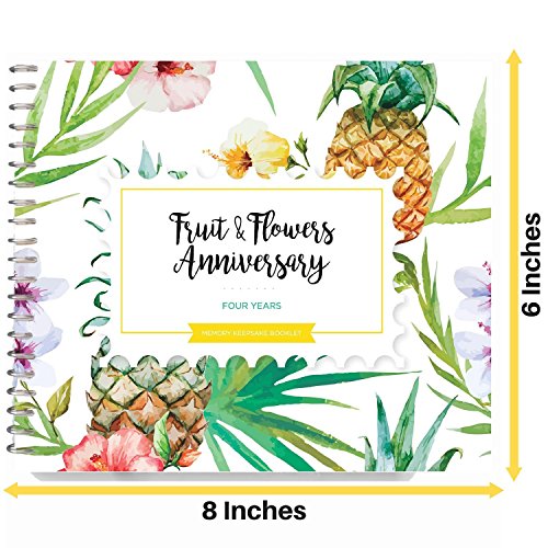 4TH WEDDING ANNIVERSARY GIFTS FOR COUPLES – Four Years Memory Journal for Husband or Wife | Fruits and Flowers Anniversary Booklet with love quotes and frames to add your pictures for him or her