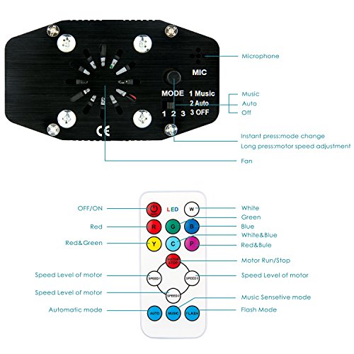 - Different Working Modes to Choose - Strobe mode and Music mode. In strobe mode lights will be changed and shined cycle through the colors; in music mode it flashes and changes colors in time with the music and be more sensitive. It can be set as you like.