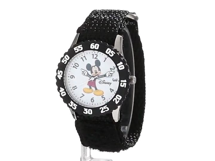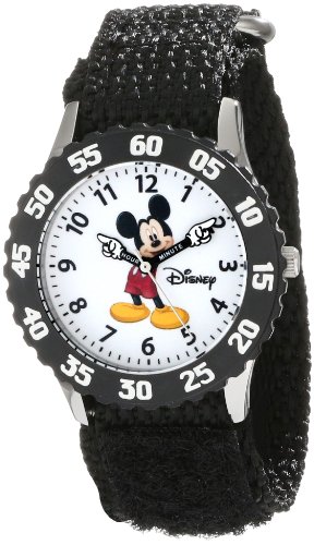 Disney Kids' W000227 Mickey Mouse Stainless Steel Time Teacher Watch with Black Nylon Band