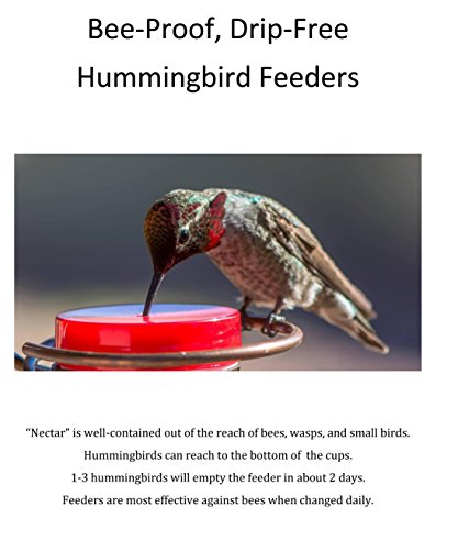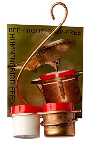 -. Feature : Beautiful handmade original copper design for feeding your beloved birds, providing an attractive addition to your garden / Bee- and wasp-proof plastic 1-ounce jars are easy to use, easy to clean and virtually unbreakable (BPA-free), for a worry-free nectar supply / Feeder holds one dishwasher-safe jar, with a spare provided for easy changing of food / Fixture measures 7 inches high and 3 inches in diameter and is made of sturdy solid copper for long-lasting bird-watching enjoyment / Proudly made in the USA since 2006 by a former zookeeper with 22 years of experience in feeding hummingbirds