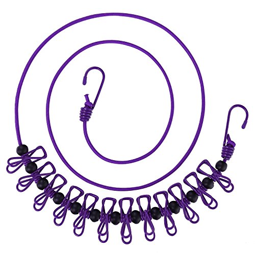 Portable Travel Clothesline by R&L - Adjustable Windproof Clothing Line with 12 Anti-skid Stoppers & Pins - Elastic Clothes Line Cord - Great For Outdoor and Indoor Laundry (Purple)