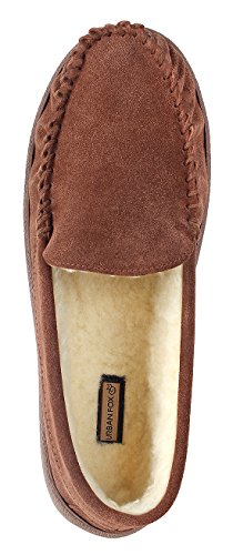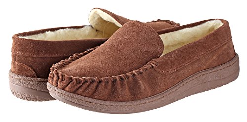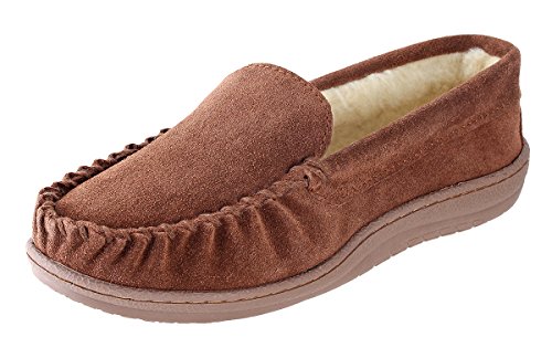 -. Binding : Apparel -. Brand : Urban Fox -. Department : mens -. Feature : MOCCASIN SLIPPERS FOR MEN: Urban Fox extremely comfortable Royce Cow-Suede Coral Fleece Lining Men Slippers are perfect to wear in the house or on vacation. The ideal cozy men slippers / CLOSED SLIPPERS FOR MEN: These luxury cow-suede slippers feature a moccasin design. A closed toe and heel pair of slip-on house shoes which keep the feet warm and comfortable. / SOFT FOAM PADDING AND RUBBER SOLE WITH GRIPS: The soft foam padding guarantees an absolute high standard of comfort while wearing the Royce. The rubber sole with grips ensures a good foothold. / LINED WITH CORAL FLEECE LINING: Urban Fox Royce Slipper is 100% lined with coral fleece. The soft lining and a thickly padded sole offers supreme comfort while walking around the house, especially in the winter. / INDOOR SLIPPERS AGAINST COLD FEET: These men's house slippers by Urban Fox are the perfect gift for every man who typically walks around the house without any slippers on, especially during the winter. -. ProductGroup : Shoes -. ProductTypeName : SHOES -. Title : Urban Fox Royce Moccasin Slippers Men I Rubber-Sole I Cow-Suede I 100% coral fleece lining I Comfortable House Slippers I Slippers for Men I Closed Toe & Heel Slippers for Men