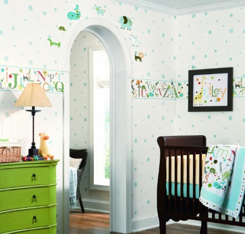 York Wallcoverings Friends Forever JE3502BD Alphabet Pre-pasted Wallpaper Border, Blue/Green/Light Blue Band