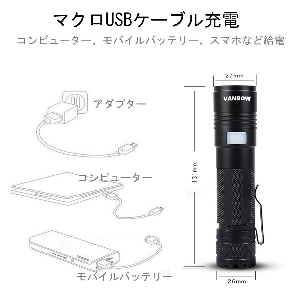 LED Rechargeable Flashlight * 1, Micro USB Case for Charging * 1,18650 Charging Battery