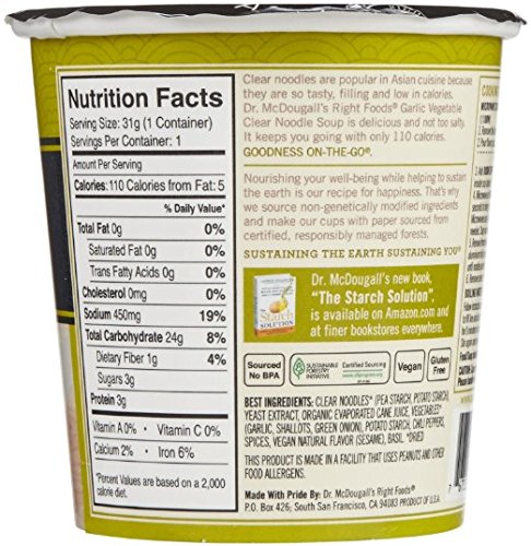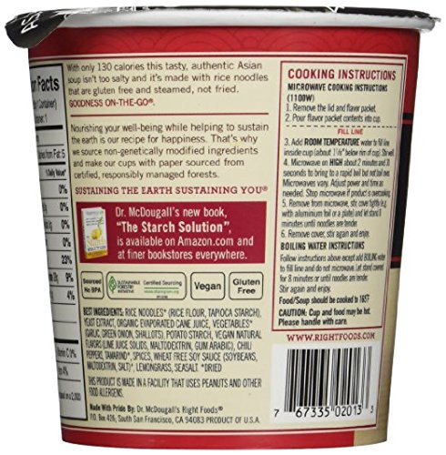 Dr. McDougall's Gluten Free Asian Noodle Cups 4 Flavor Variety Bundle, 1 Ea: Thai Tom Yum, Garlic Vegetable, Pad Thai, and Sesame Chicken, 1.1-2 Oz.