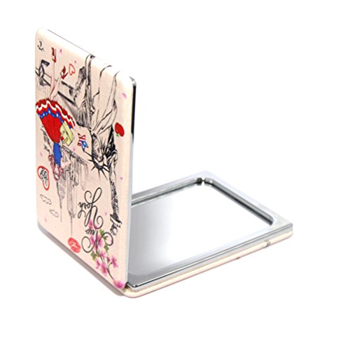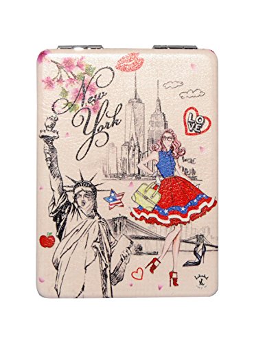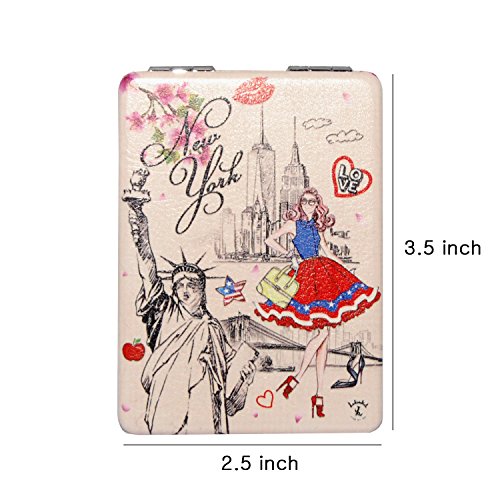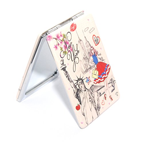 Luxxii Folding Pocket Mirror Round Compact Mirror Double-sided Makeup Mirror - NYC Manhattan Skyline Fancy Design Souvenir (Pack 1, Type B)