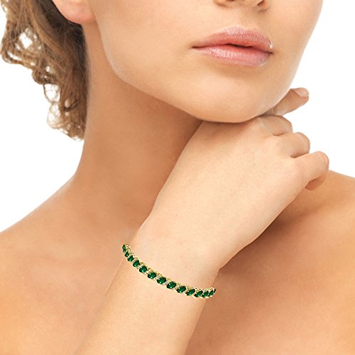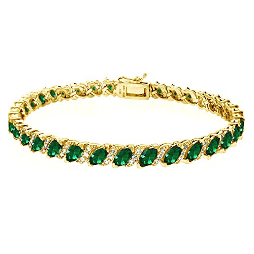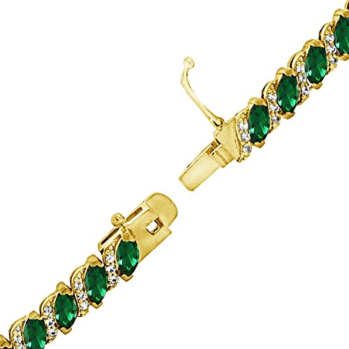 FEATURE - Elegant and chic, this stunning tennis bracelet for women and girls features 6x3mm marquise-cut simulated emeraldgemstones with white topaz accents for an extra dazzle.