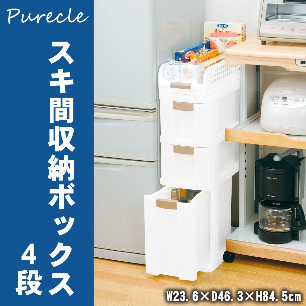 | ちょっとしたすき間が収納スペースになります。1段1段スライド式なので奥の物を取り出しやすく、四隅にキャスターが付いているので移動もラクラク♪ |