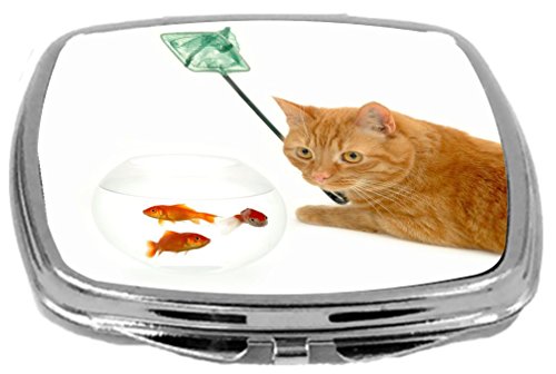 Rikki Knight Compact Mirror, Cat Fishing Goldfish