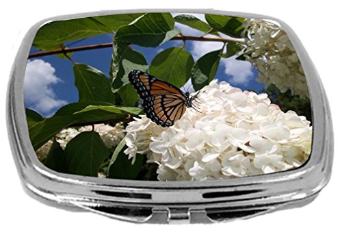 Rikki Knight Compact Mirror, Butterfly on White Fresh Blossoms, 3 Ounce