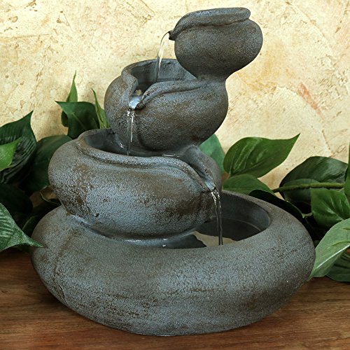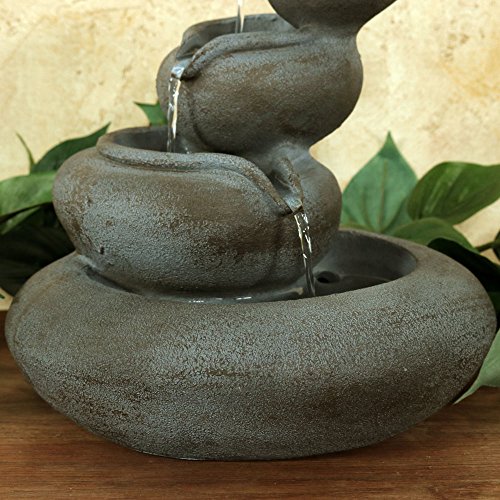 Water fountain is made from lightweight polyresin so it can easily be placed on a desktop surface or coffee table in your living room.