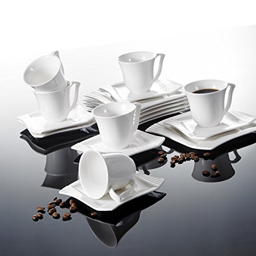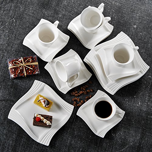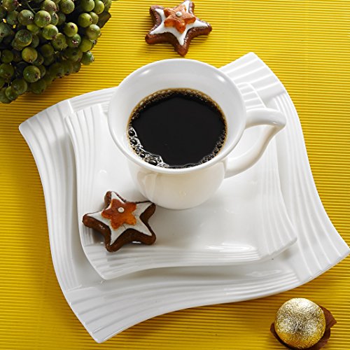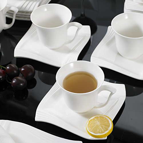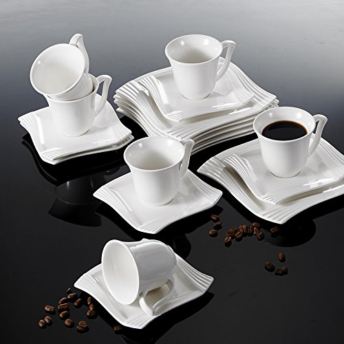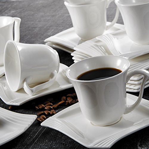Malacasa, Series Amparo, 18-Piece Ivory White Porcelain China Ceramic Cream White Dinner Combi-Set with 6-Piece Cups 6-Piece Saucers and 6-Piece Dessert Plates Service for 6 4.75" Cup L*W*H: 12*9*8cm Weight: 190g Volume: 200ml 6" Saucer L*W*H: 15*15*2cm Weight: 259g 8" Dessert Plate L*W*H: 20.5*20.5*1.8cm Weight: 429g Freezer, Dishwasher and Microwave Safe 0 |