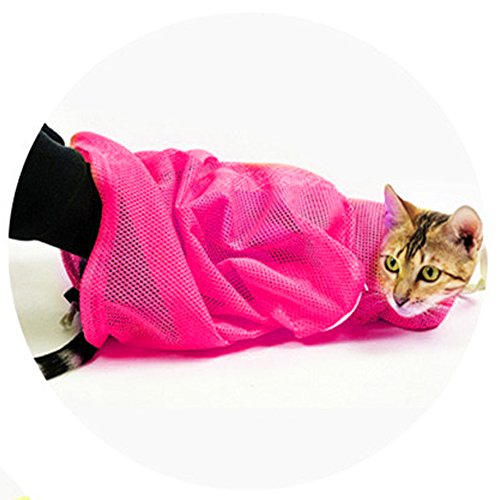 Can be used for cats, made of high quality polyester, mesh design to let water in and out when bathing Size: Dimension: 20" L x 14" W, fit neck girth smaller than 12.6" (Fits for all cats in different body shape and ages) Package includes: 1 * Cat Grooming Bag 0