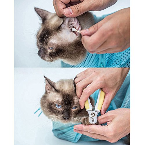 Studio : VANTIYAUS Publisher : VANTIYAUS Binding : Misc. Product Description Adjustable Polyester Pet Cat Washing Grooming Mesh Bags for Cat Body Teeth Cleaning Bathing Nail Trimming Ears Picking Medicine Giving Injecting Examing
