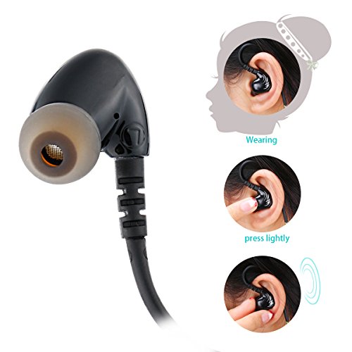 -. Feature : Awesome sound effects and noise isolation enhance you do sports better and better. Perfect stereo and bass immerse you deep in music at your ease. / Ergonomic design fit gently and safely with dropping-proof memory wire. Ear-buds are anti-slip,Waterproof and Sweatproof of sweat for providing best experience during exercise. / Built-in microphone is convenient to voice conversation. Button on the part of microphone for controlling answer or hang up, music playing or pause. / Steady and durable, light as feather, high-quality silicone is comfortable for wearing. 3 sizes of ear-tips meet for different requirements. / Compatible for any Smartphone, Laptop, MP3/MP4 Player, Speaker and any other devices with 3.5mm audio jack.