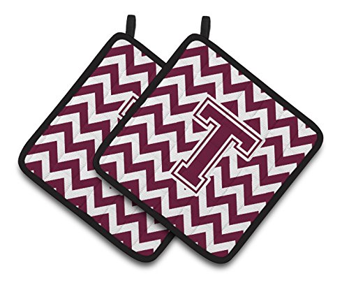 Caroline's Treasures Letter T Chevron Maroon & White Pair of Pot Holders CJ1051-TPTHD, 7.5HX7.5W, Multicolor