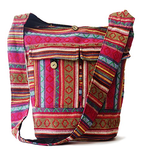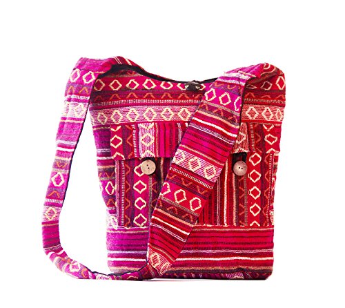 This bag is handmade 100% cotton fabric, its handloom weaved cloth , environment friendly. Light weight(330 gram) but very durable. Cool simple design and Multi-functional use. Because of self design in cloth not as much as perfect just like printed or industrial made cloth. Design of button can be change because of tie it randomly.multi-functional use according to your personality(unisex) just by change the color. You never got disappointed after using this type of shoulder bag. Many things can carry at a time. handloom cloth. Stithed propoerly.