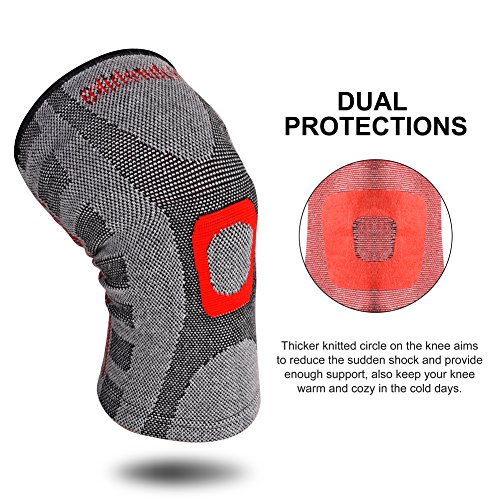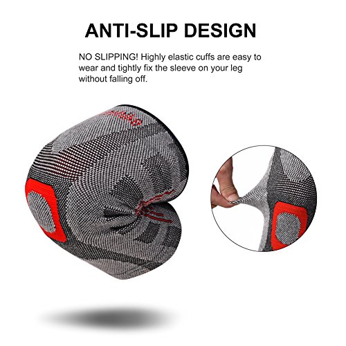 -. Feature : MATERIAL-Beautifully made with skin-friendly, breathable and sweat absorbent spandex fiber, this multi-function sleeve is great for use in summer or winter. / ANTI-SLIP DESIGN-NO FALLING OFF! NO SLIPPING! Highly elastic cuffs are flexible to wear and hold it on your legs securely and comfortably. / ERGONOMIC DESIGN-Thicker and knitted circular circle, reduce the sudden shock for providing the excellent support, keep your knee warm and cozy in the cold days. / MULTI FUNCTION-This knee support sleeve is perfect for cross training, weight lifting, gym workouts and any other types of exercises. / BENEFITS-Can be a amazing buffer for providing the stable compression also reducing the swelling.
