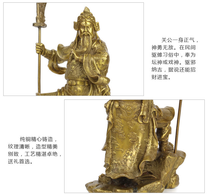 Guan Gong is respect for the folk martial god of wealth formerly known as Guan Yunchang is three times of the generals and Liu Bei andZhang Fei sworn brothers stately Zheng Zhong loyal can house the town of evil keep peace and felicitous wish of making moneycaiyuanguangjin.