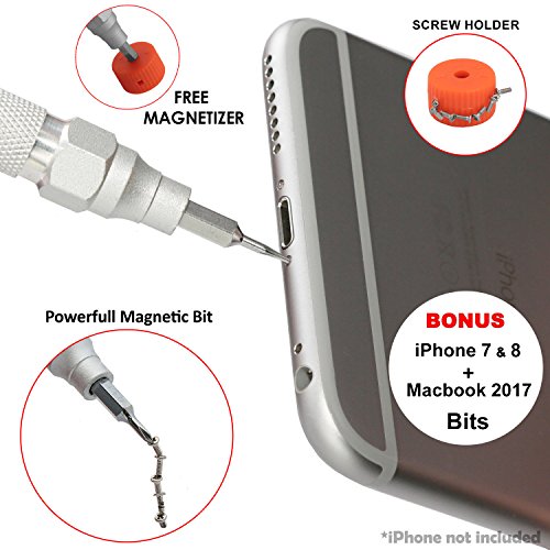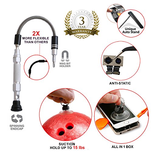 GET ALL THE TOOLS YOU NEED IN ONE COMPLETE KIT: Stainless steel tweezers (Japan Quality), 38 CR-V screwdriver bits (Hex, Trox, Phillips, Flat), Magnetizer, Suction,Pry Opener. electronic opener and magnetizer, this is the best, all-in-one, combo tool kit that will keep you perfectly prepared for any repair!